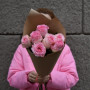 Розовые розы с альстромерией в сумочке